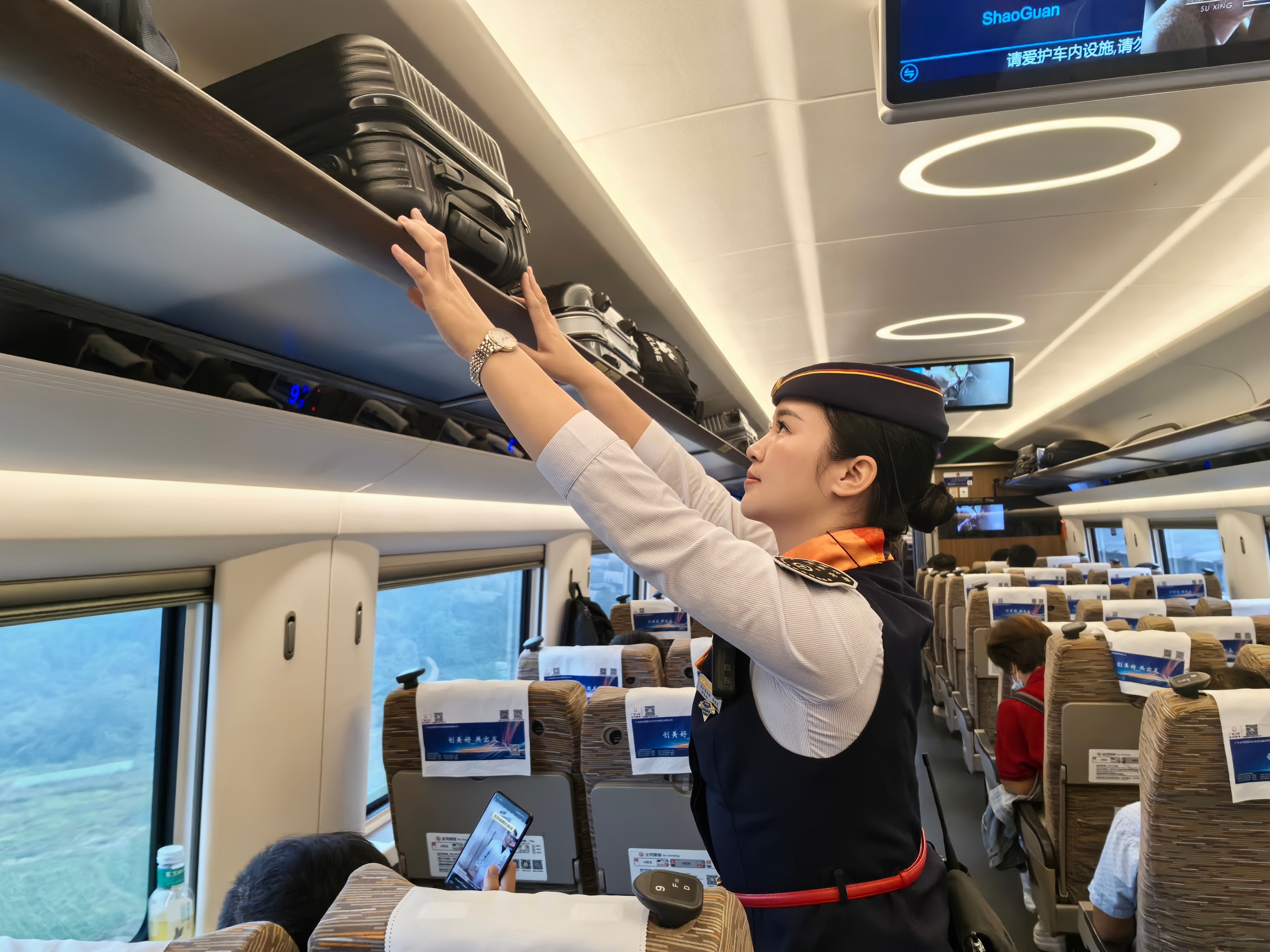 身穿笔挺制服,面带温和笑容,吴金凤值乘的长沙南至惠州北G8441/2次列车,如同一条流动的丝带,每日穿梭于湘粤两地。她从清晨忙碌到夜深,用真情服务为南来北往的旅客架起一座座连心桥。