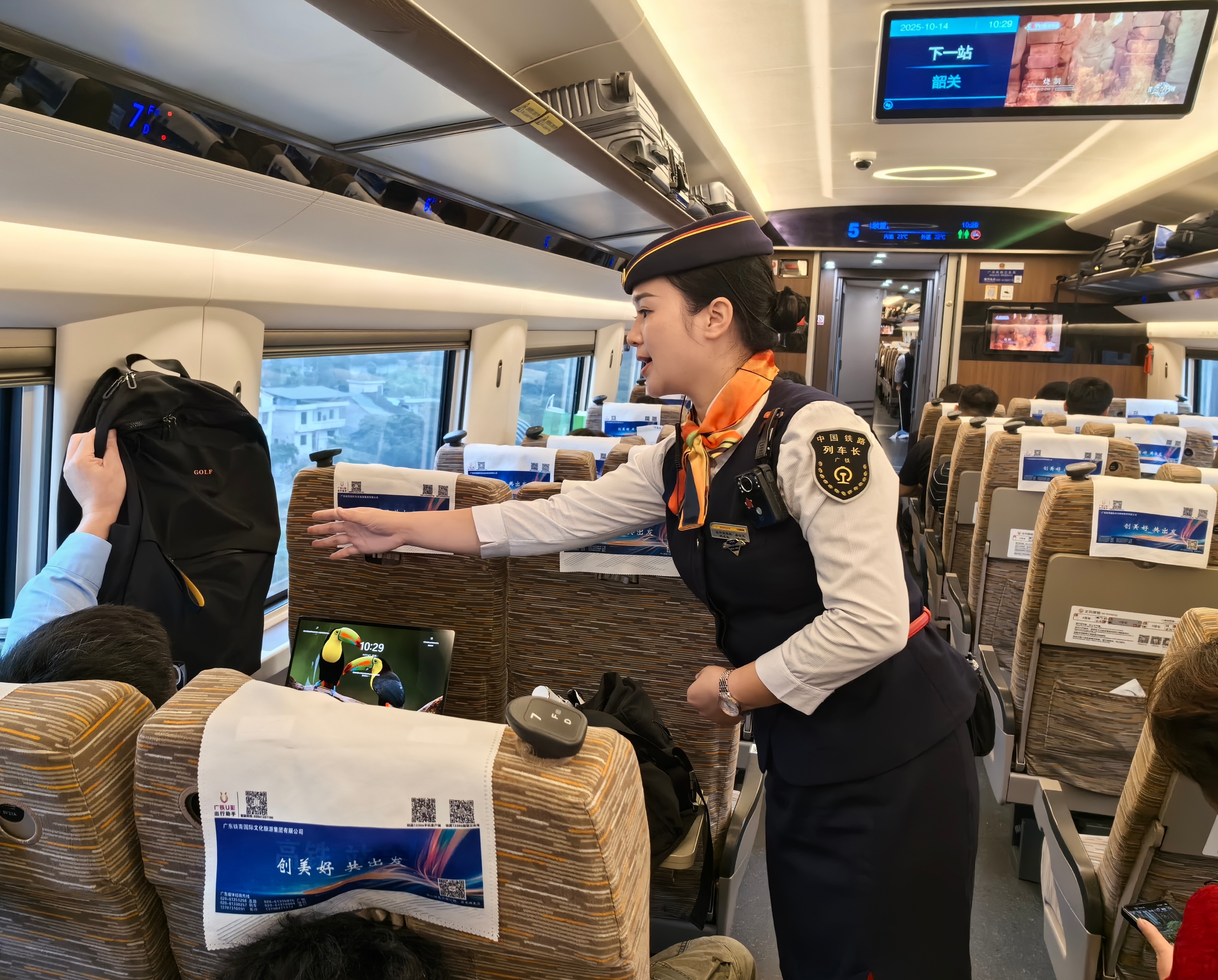 得知小女孩因上车人流拥挤与奶奶走散后,她一边轻轻擦去孩子的泪水,一边同步联系车站协助寻找家属。旅途全程,她安排专人悉心陪伴小女孩,直到列车抵达惠州北站,将孩子安全交到早已焦急等待的亲人手中。