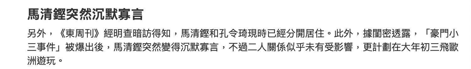 《东周刊》爆马清铿小三“五索”挑机马太孔令琦,绝密片段流出 | 星岛环球网