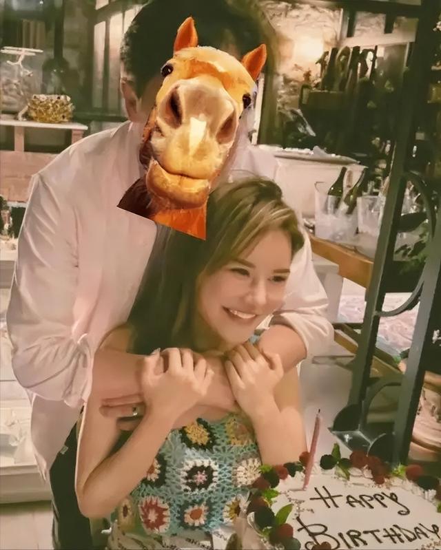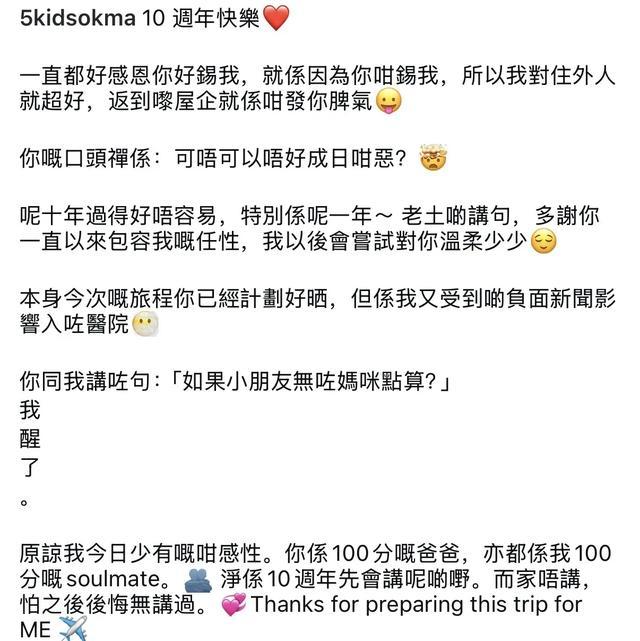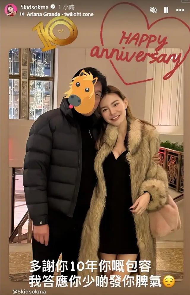 她曾在十周年交往之际,在社交平台发出两人亲密合照并高调回应。