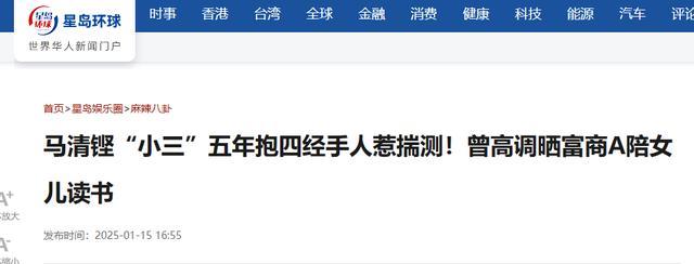 马清铿“小三”五年抱四经手人惹揣测!曾高调晒富商A陪女儿读书 | 星岛环球网