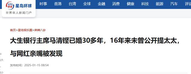 大生银行主席马清铿已婚30多年,16年来未曾公开提太太,与网红亲嘴被发现 | 星岛环球网