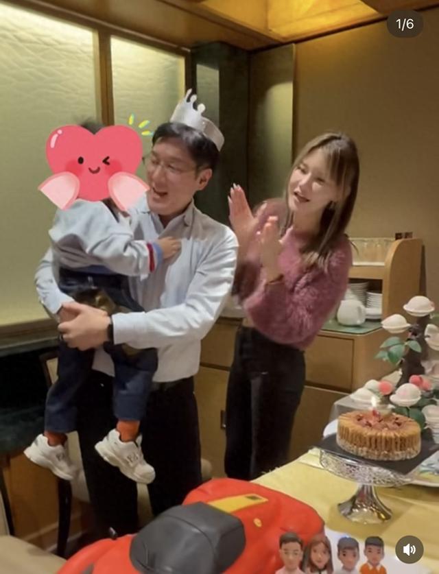 全程抱着和钟睿心生的最小的儿子,温柔地唱着生日歌,动作熟练又亲昵,完全没有一丝遮掩。