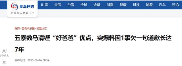 五索数马清铿“好爸爸”优点,突爆料因1事欠一句道歉长达7年 | 星岛环球网