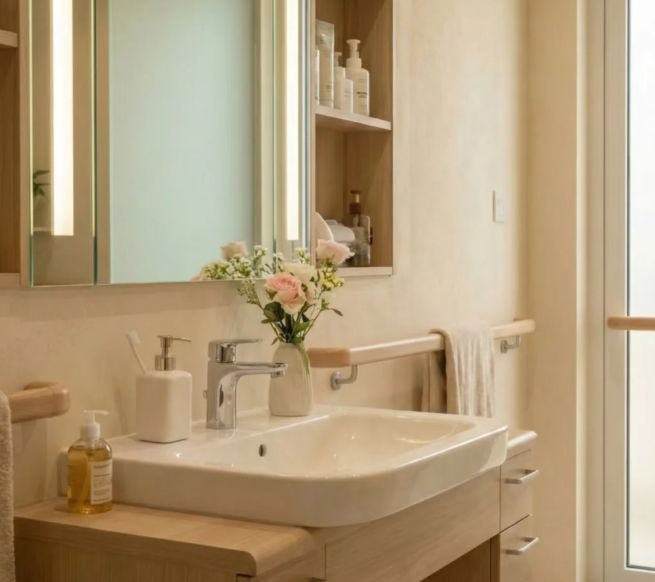 常有人走进老人家的屋子,第一句话就是“装个扶手吧”。其实扶手是最后的办法——真正舒服的家,是不用扶手的。地面平整无高差,移门代替推拉门,水龙头用杠杆式的,轻轻一压就出水。这些看不见的细节,像空气一样存在着,却从不需要被想起。阳台上留出一小块地方,放两盆好活的绿萝,一把能晃动的藤椅。午后风来,叶子沙沙响,老人眯着眼,什么都不做,就已经很好。